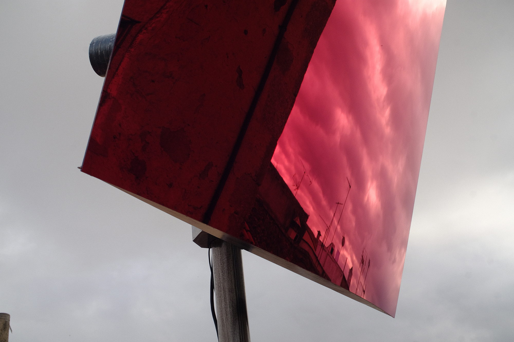 A partir de esta condición, Dar luz se basa en un gesto sencillo pero significativo: redirigir la luz del sol hacia la Calle Hornillo, una de estas calles sombrías del casco antiguo. Mediante un heliostato instalado en una azotea, reflejar el sol se convierte en un acto simbólico: prestar luz donde no llega, reconducir el sol hacia una calle que, durante los meses de la intervención, ha dejado de ser inscrita por la trayectoria luminosa del tiempo.