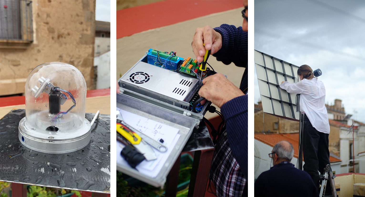 Based on this condition, Dar luz is based on a simple yet significant gesture: redirecting sunlight towards Calle Hornillo, one of these shadowy streets in the old town. Using a heliostat installed on a rooftop, reflecting the sun becomes a symbolic act: providing light where it doesn’t reach, redirecting the sun towards a street that, during the months of the intervention, has ceased to be marked by the luminous path of time.