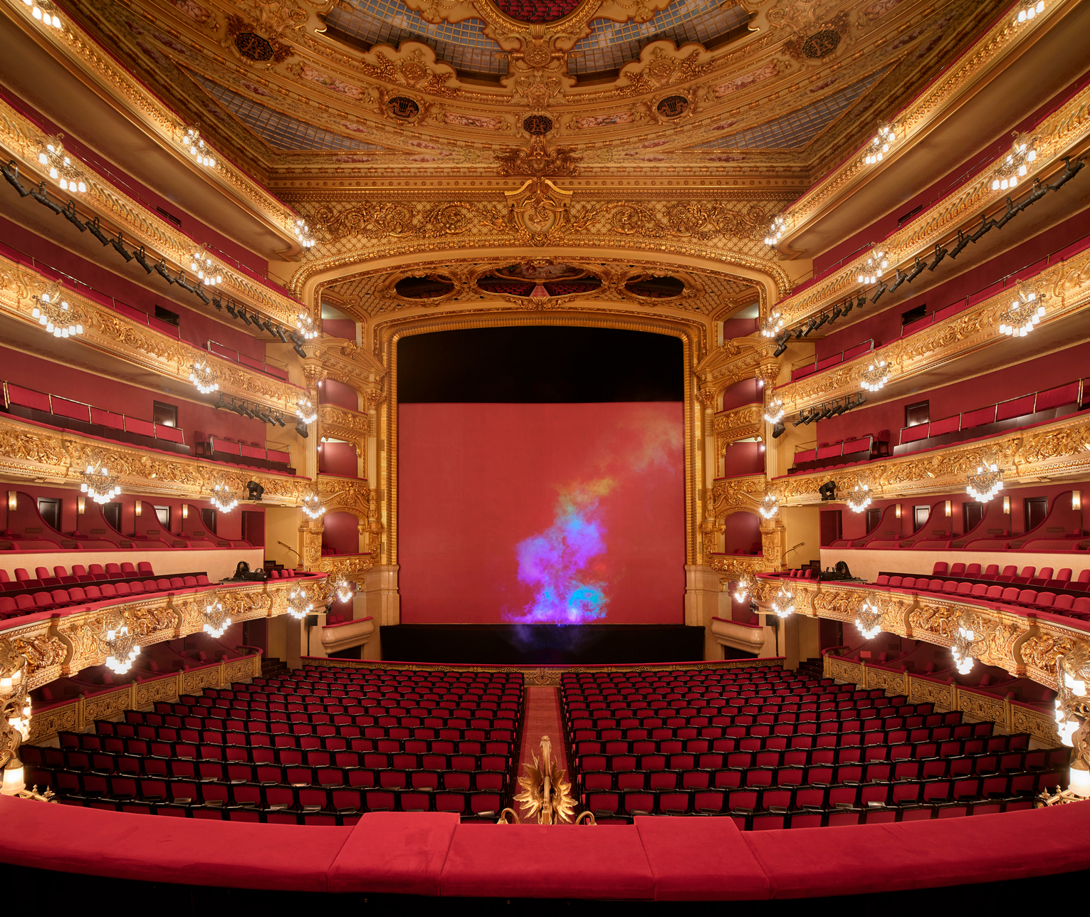 Iris de Foc al Liceu, 2024 Fog, digital light and sound by Íñigo Soler Ephemeral installation at Gran Teatre del Liceu, Barcelona